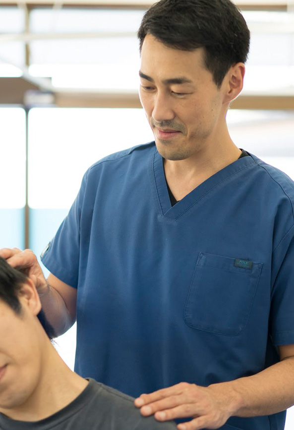 外傷による骨や運動器、軟部組織(筋・腱・靱帯など)の損傷に対し、手術や薬ではなく診察・徒手検査・整復・固定・後療と柔道整復師の卓越した「手技」により、人間のもつ自然治癒力を高め、患者さんに寄り添い、患者さんの意向を尊重しながら治癒に導きます。